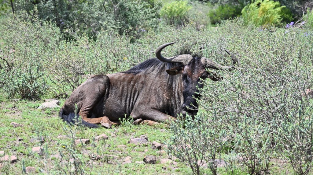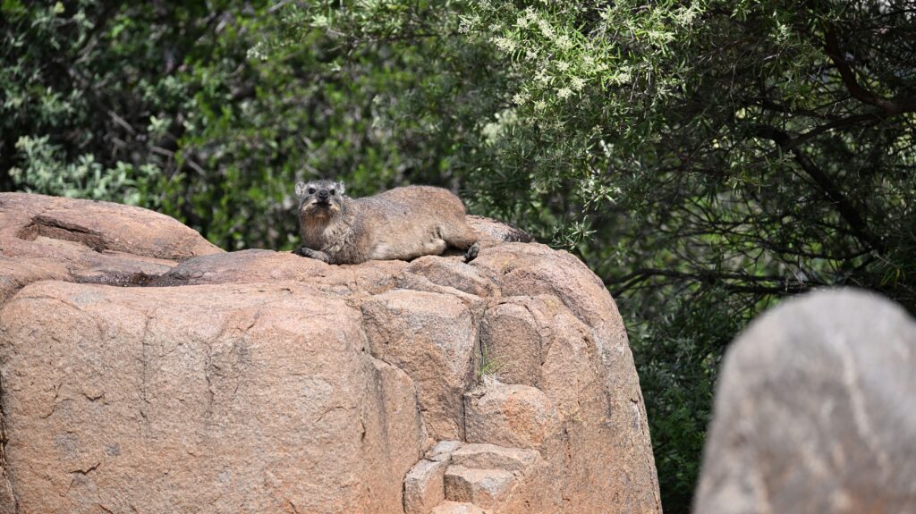 De eerste dieren waren een feit, een struisvogel of 3, een Wildebeest, een klein hertje, een yellow mongoose en ja, een capybara.. Tegenwoordig het lievelingsdier van mijn nichtje. Dus deze werd breed gefotografeerd.